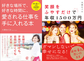 「好きな場所で好きな時間に愛される仕事を手にいれる本」(ぱる出版)「笑顔を増やすだけで年収1500万円」(KADOKAWA)の2冊の書籍にまとめられたメソッドは、多数の女性に支持される。