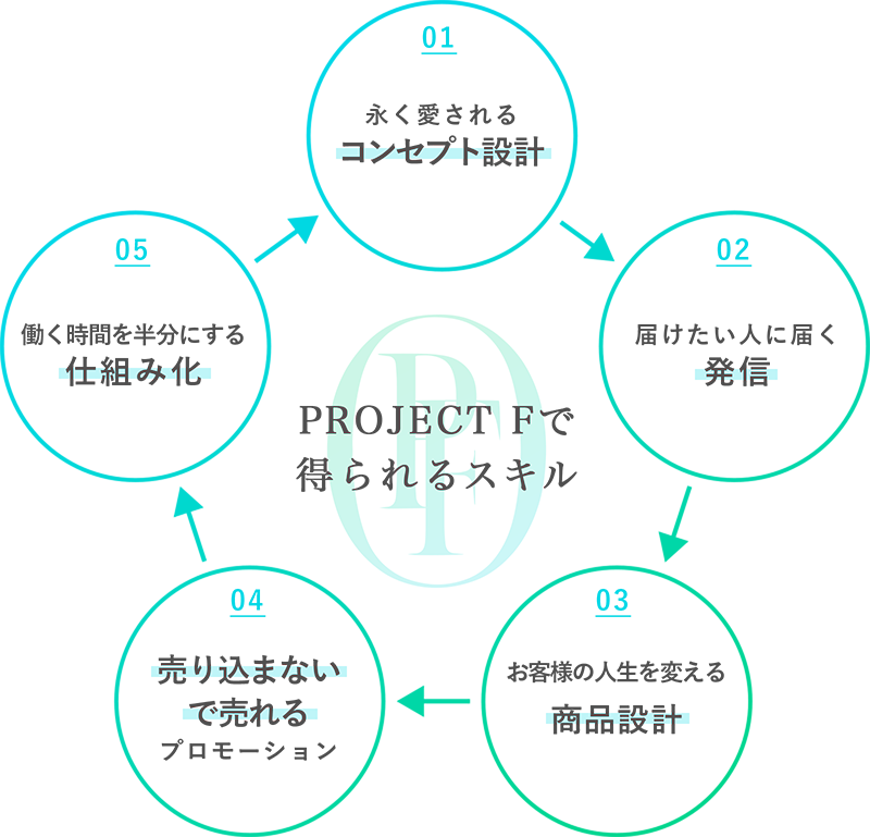 - A自分でビジネスをした経験のない専業主婦の状態から起業した卒業生もたくさんいます。自己流でがむしゃらに時間を使ってしまうより「起業の最初のステージ」にプロジェクトFで体系だてられた知識を得ていただくのは、長い目で見るとかなり良い投資にしていただけると思います。